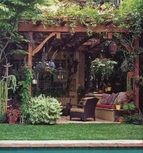 不同種類、不同季節(jié)的花草種植或種在陶罐里,種在瓷盆上,種在花盆里,種在廢棄的瓶罐里,隨意擺放在庭院的各個(gè)角落,或地上,或簡單搭建的花架上,或門口邊上,橫欄上。待鮮花盛放,綠植嫩綠時(shí)節(jié),目光所及之處,一片的生機(jī)勃勃,芳香四溢,院子里充滿了田園小詩意。不需要多繁重的設(shè)計(jì),就是這樣簡單自然,還原舒適隨心的生活環(huán)境。