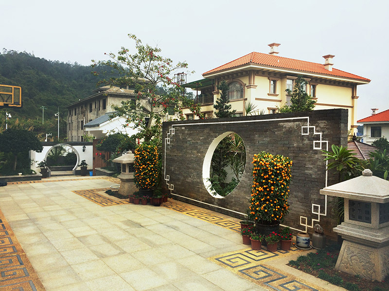 大部分別墅庭院會(huì)兼有規(guī)則式和自然式的特點(diǎn),這便是混合式庭院?;旌鲜酵ピ罕憩F(xiàn)形式,第一類(lèi)是在規(guī)則的構(gòu)成元素上呈現(xiàn)自然式,歐洲古典貴族庭院為此類(lèi)特點(diǎn)代表之一;第二類(lèi)是在自然式構(gòu)成元素上呈規(guī)則式布局,如中國(guó)北方的四合院庭院,由規(guī)則的硬質(zhì)構(gòu)造物與自然的軟質(zhì)元素自然連接,方形或圓形的硬質(zhì)鋪地與天然的植物景觀和外緣不規(guī)則的草坪結(jié)合在一起,給自然的坡地加上了人工的精巧。