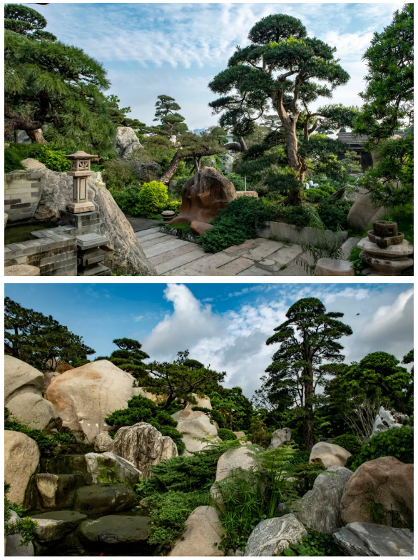 園主黃志東先生以嶺南為園藝景觀、在花卉世界內(nèi)打造了東信園藝展示區(qū),渾然天成的嶺南派風(fēng)格假山、魚池、庭院和木屋等山石流水,獨具匠心的亭臺樓閣,總體布局給人以或高山流水,或庭院深深的神怡感覺,令人嘆為觀止。
