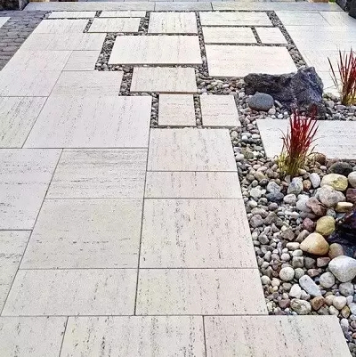 另外,常用的還有砂巖,砂巖不屬于花崗巖,顏色很多,質感比較柔和,觸感也好,所以受到越來越多的青睞。你還可以根據(jù)自己的需求,用砂巖作出碎拼等效果。