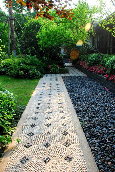 別墅庭院景觀鋪裝設計方案具有很強的表現(xiàn)力,鋪路是花園建設的一個要素,根據(jù)自然環(huán)境不同呈現(xiàn)的風格也不同。