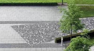 最常見的就是不同鋪磚的邊界,利用豐富的平面構成處理,或者運用豐富的波打處理。