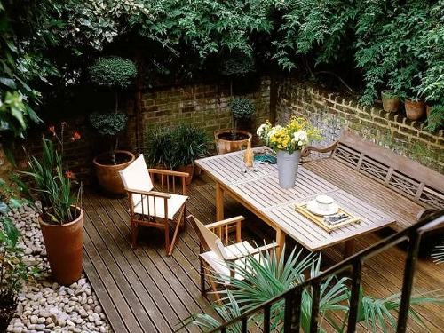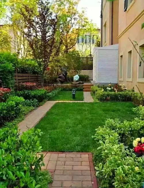 在強調(diào)質(zhì)感和異域感覺的別墅庭院中,使用粗獷的紅磚或者棕色系石板效果很好, 既與暖色系的矮墻相匹配,也和種植區(qū)的草地或砂礫地面形成呼應(yīng)。