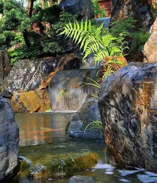 別墅庭院水景設(shè)計元素:噴泉、瀑布、疊水、石橋