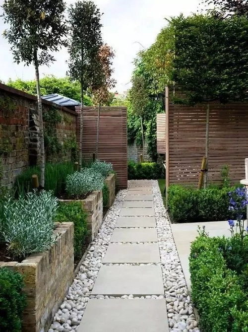 礫石,在鄉(xiāng)村庭院和日式庭院中很常見(jiàn),它是松動(dòng)的,踩在腳下很舒服,排水性也比其他地面強(qiáng)。礫石鋪地有助于防止土壤流失,讓水乖乖的滲透到地下,而不是沖刷走。