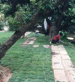 花園踏腳石鋪景觀鋪裝施工順序為:素土夯實——砂土墊層 厚50——C15混凝土 厚30——花崗巖或板巖汀步。