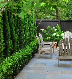 別墅花園道路鋪裝,選材應(yīng)以天然的石材、原木為主, 例如青石板, 黃麻石、砂礫、鵝卵石等原始樸實(shí)的材料, 用天然材料表現(xiàn)出粗線條的質(zhì)樸,更凸顯花園的味道。